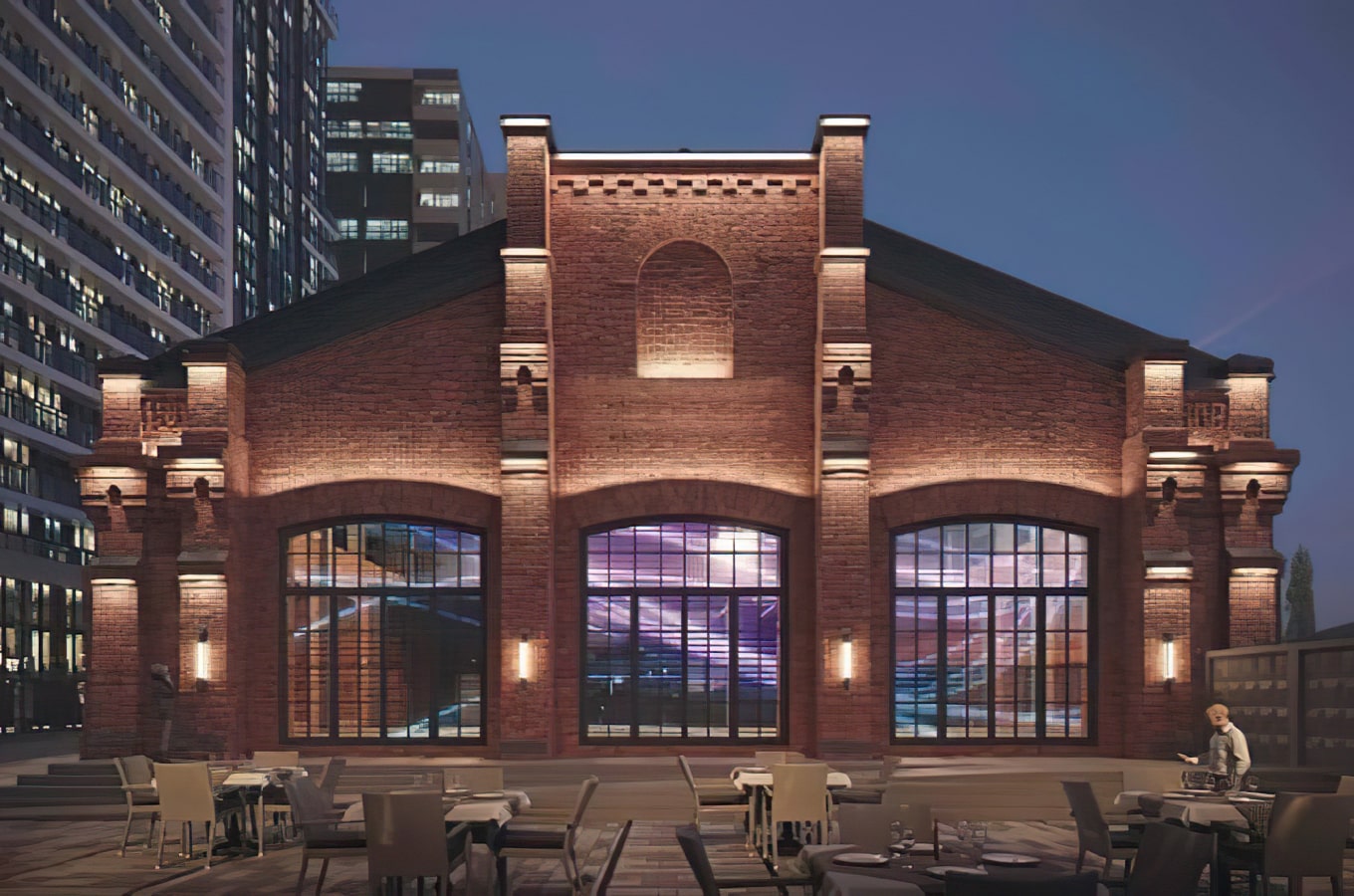 Проект реконструкции выполнила мастерская T+T Architects. Архитекторы сохранили исторический облик здания, дополнив его современными дизайнерскими решениями. Одно из них — эффектная светопрозрачная конструкция на боковом фасаде, которая идеально вписывается в кирпичную кладку вековой давности.